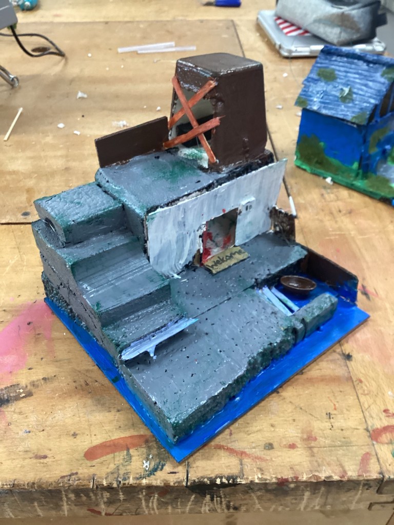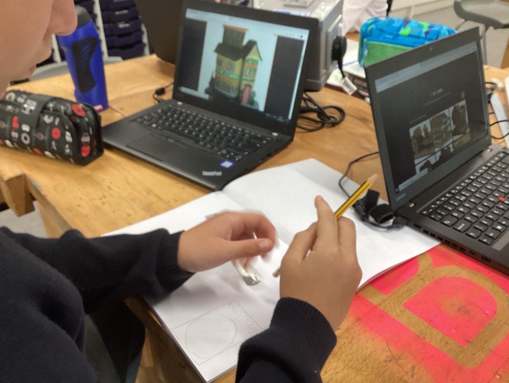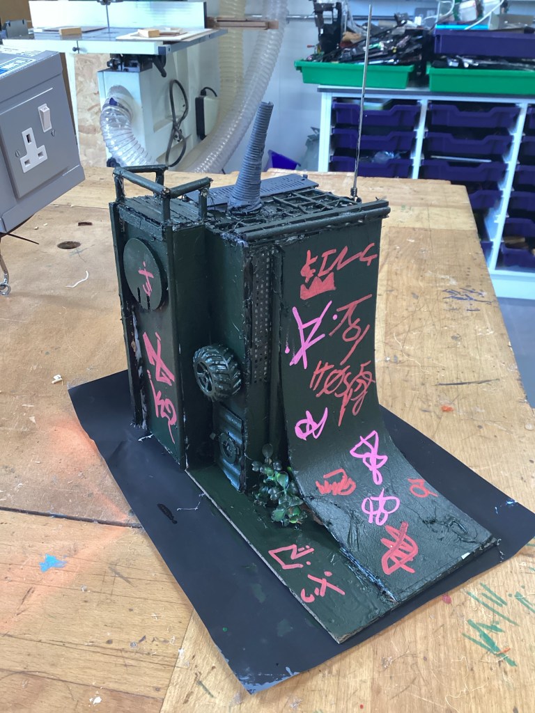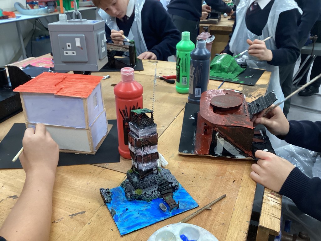 Year 7 worked on Architectural model making, using mixed media, CAD design, 3D Printing and AI